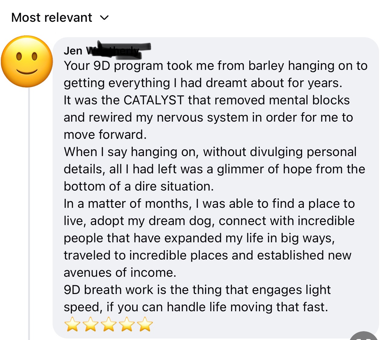 A Safe Path Back Into Your Body, Breath, and Inner Stability If you’ve been feeling emotionally overwhelmed, disconnected from your body, or like you’ve been carrying more than you can name, you’re not broken. Your nervous system has simply been doing its best to protect you. This 9D Transformational Breathwork Program was created for people who are ready to release what’s been stored in the body, without forcing, reliving, or overwhelming themselves. Over 7 weeks, you’ll be guided through one carefully curated breathwork journey per week, allowing your system time to integrate and recalibrate at a sustainable pace. This isn’t about pushing through pain. It’s about creating safety first, so real transformation can happen. What This Program Supports Each journey works on a specific layer of healing, helping you gently unwind what has been held in the body, subconscious, and nervous system: • Grief and loss that never had space to move • Somatic healing for stress, tension, and stored emotion • Transforming anger into healthy, sacred life force • Inner child healing and emotional re-patterning • Shamanic 9DMT-style journeys for deep subconscious release • Transcending fear and survival responses • Cellular regeneration and energetic reset • Integration so change actually lasts This work meets you where you are and guides you forward without overwhelm. What Makes This Different This is not standard breathwork. The 9D approach combines layered soundscapes, guided somatic cues, subconscious reprogramming, and shamanic journeying to work across the physical, emotional, mental, and energetic bodies at once. Each session is intentionally spaced to honor nervous system safety, trauma-aware pacing, and real integration. You’re not asked to “go harder” or breathe longer. You’re guided to listen, regulate, and trust your body’s wisdom. You remain in control the entire time.